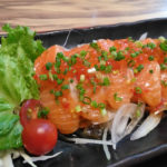 見た目は「たこ焼き」そっくりですね。真ん丸でなく俵形のドーナツを「たこ焼き」に見立てて、上にかかっているのはチョコレートとクリームでしょうか?