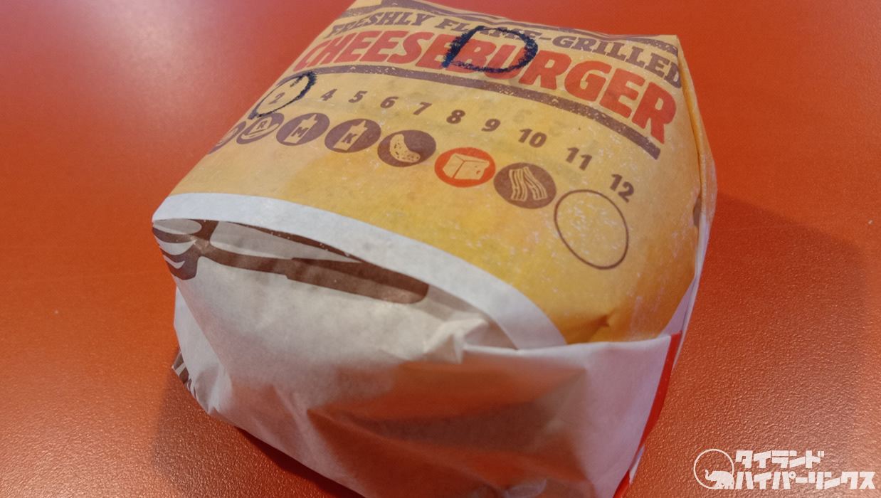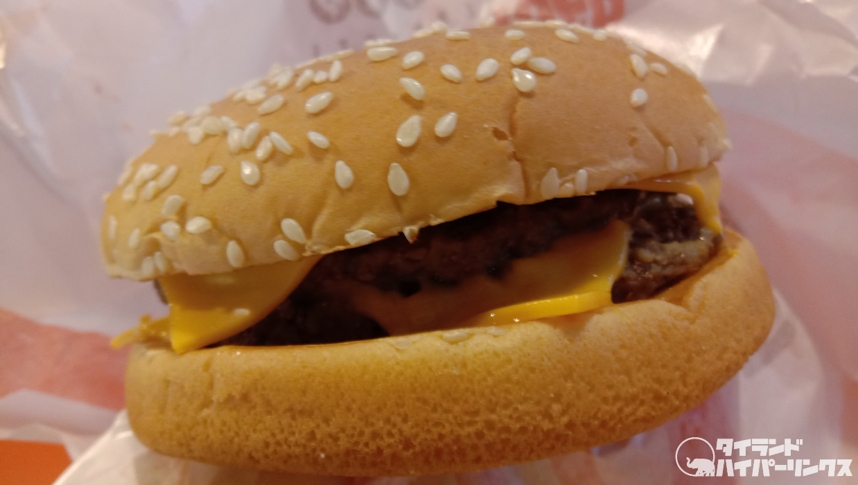 この日もフライト前に、ちょっと小腹がすいていたので、久しぶりに足を伸ばしたバーガーキング。とりあえずハンバーガーを一つ食べたいな・・・、とオーダーしたのが「ダブルチーズバーガー」。価格は一つ200バーツ。通常(空港でない店舗)では169バーツなので、空港店舗料金ですね。