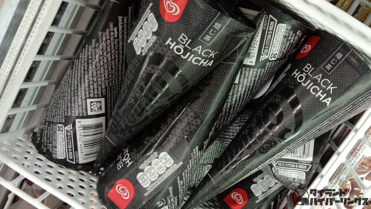 アイスクリームブランドのウォールズ(WALL’s)。どんな田舎に行ってもウォールズの移動販売の車を見かけるほど、タイ人の間ではおなじみのアイスクリームですね。そんなウォールズから焙じ茶のアイスクリームが発売されたと聞いて、早速買いに行ってきました。