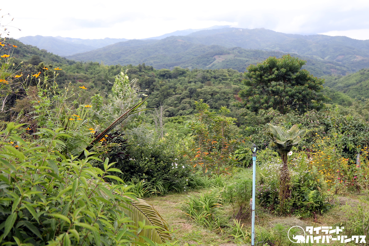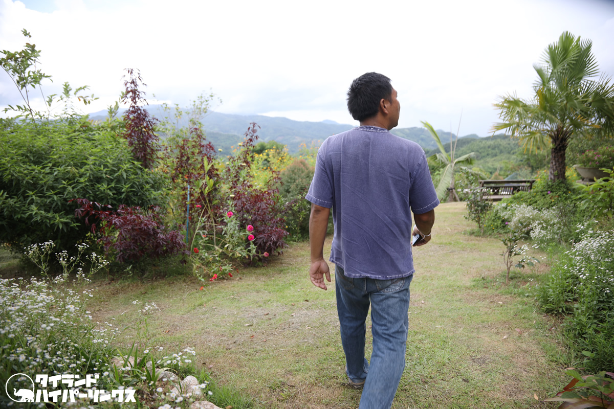 見晴らしの良いオーガニックファームに到着。ここは「プーチャイ」の全てのデザインも行ったオーナーさんの自宅の前です。