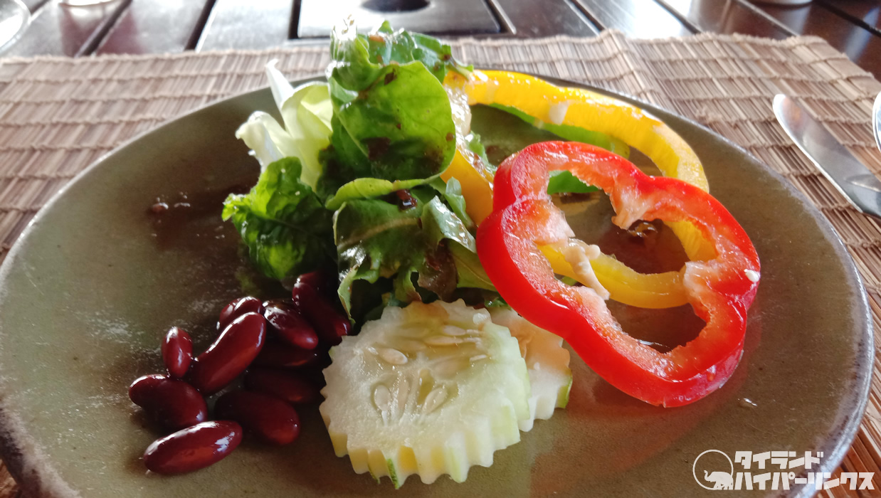 オーガニックファーム採れた野菜で「プーチャイサイ・サラダ」