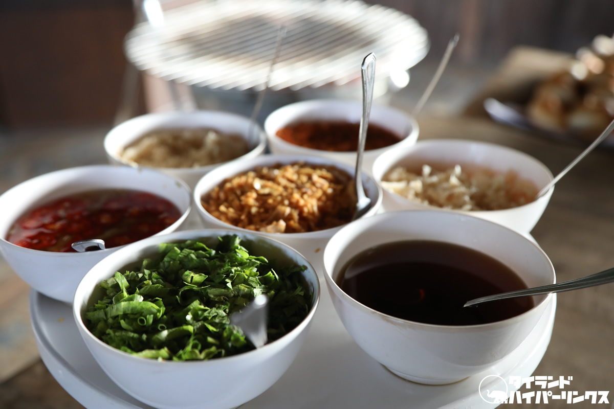 もとからしっかり味はついていますが、更に色々な調味料で自ら味を決めるのがタイ式です。