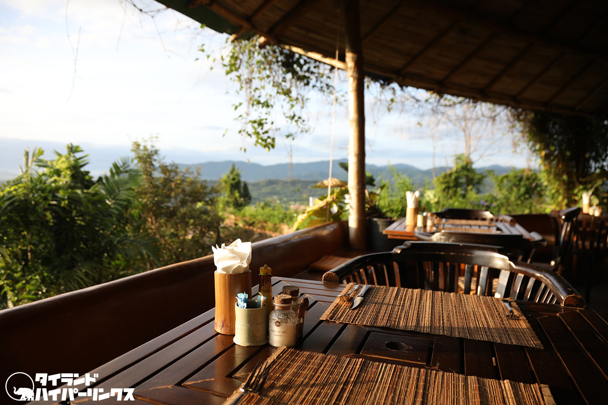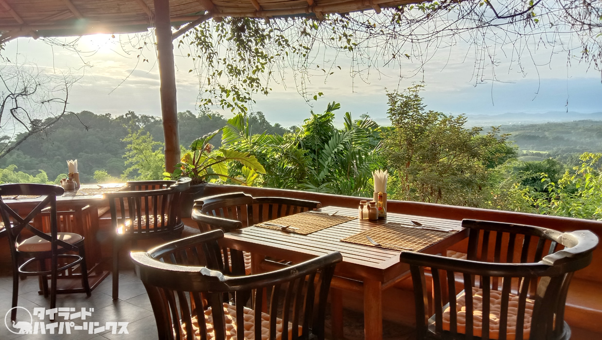 「プーチャイサイ」の朝食ブッフェは山から昇る朝日を浴びながら