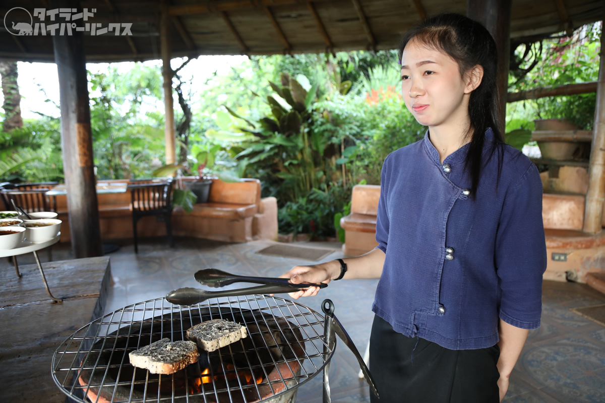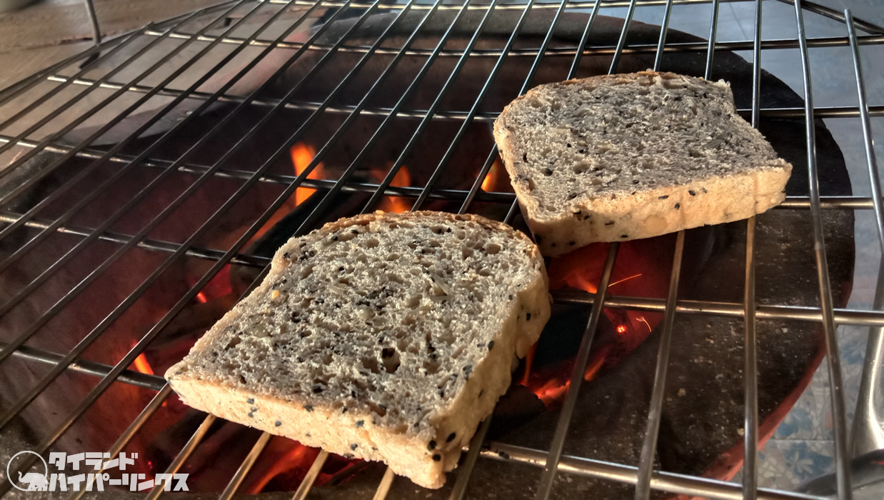 ここではトースターはなく、パンを炭火で炙ります。