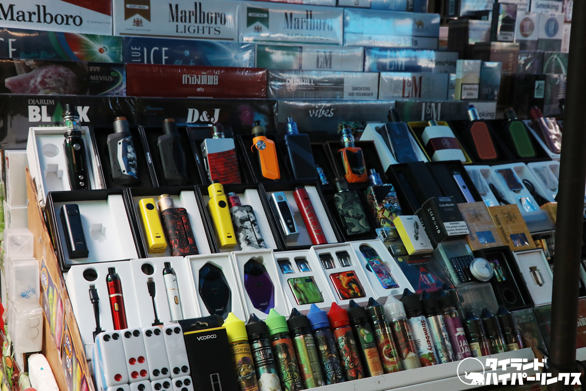 タイでは違法のVAPE(電子タバコ)とリキッドも大量に販売されていました。タイに持ち帰って警察に見つかれば、罰金ですよ!
