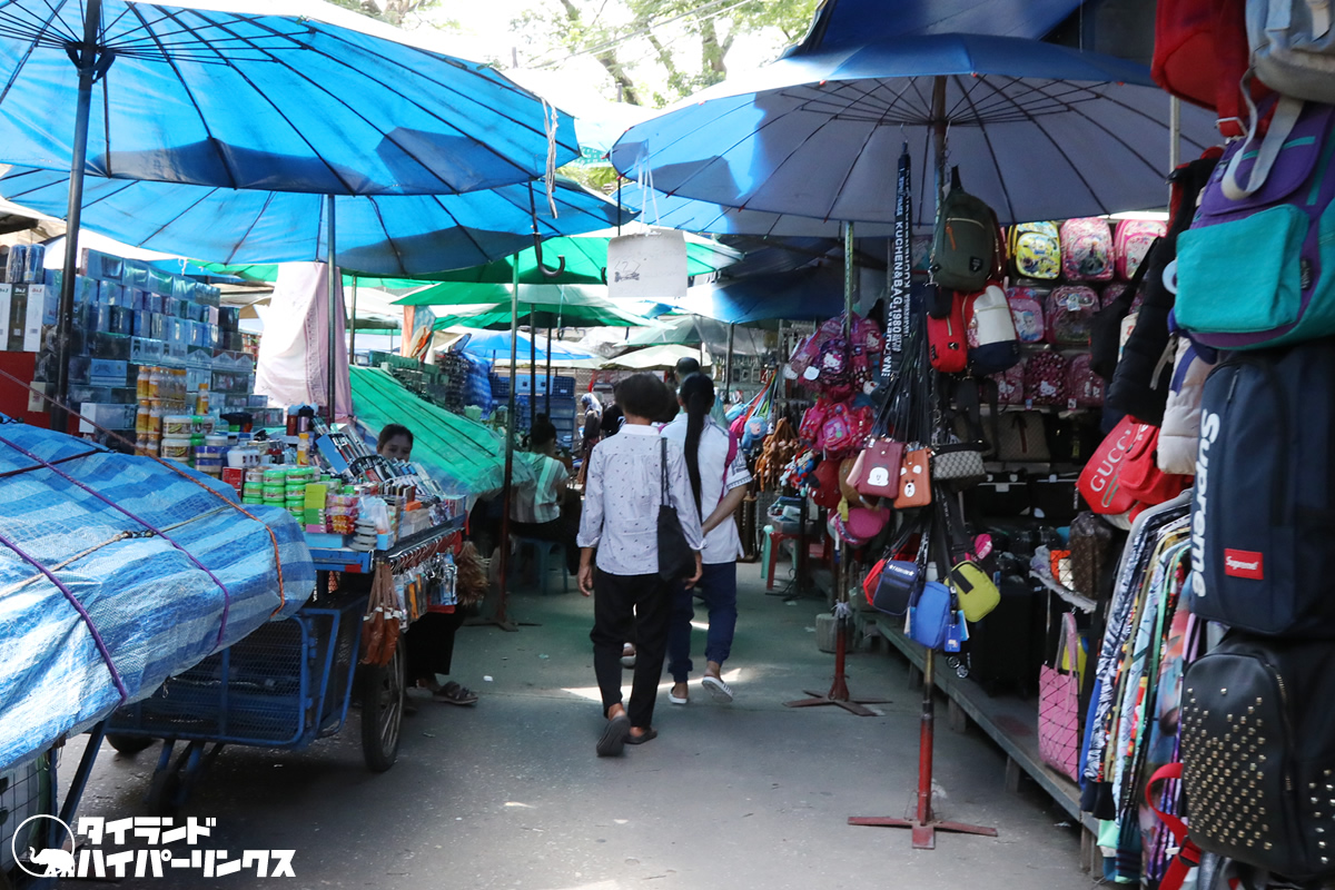 国境を越えたタチレク側には、市場が広がっています。タイバーツはそのまま使えるので安心を。国境市場だけでなく、タチレクでは、どこでもタイバーツが使えるようです。