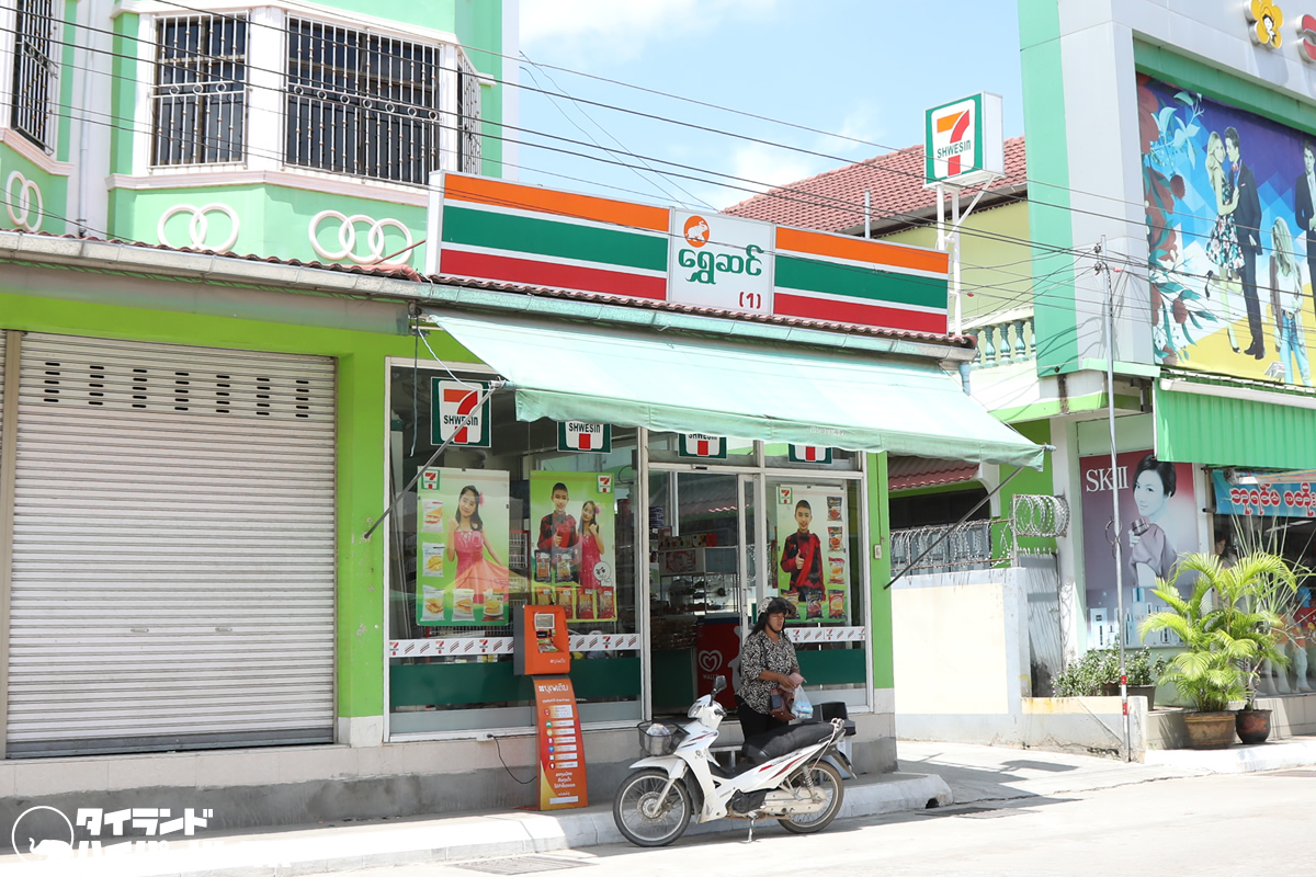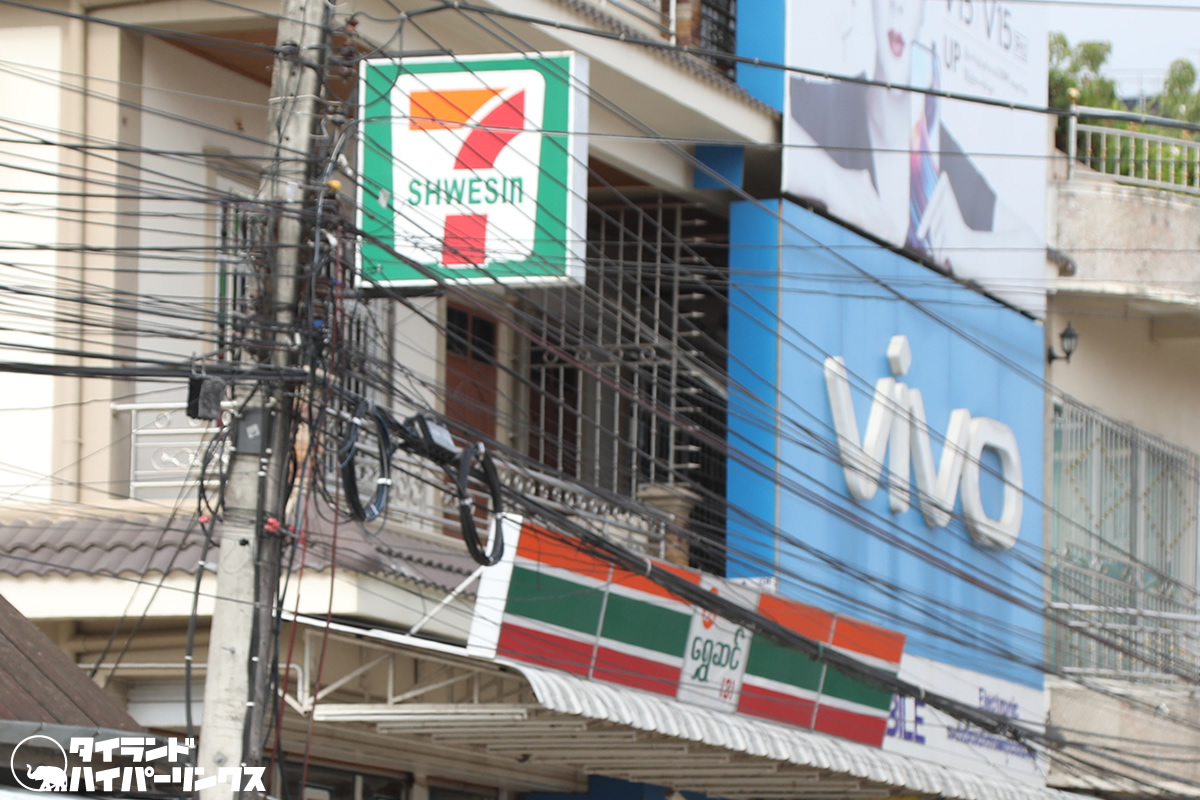 道中何度か見かけたのが、なんとセブンイレブン。「ミャンマーにもセブンイレブンがあるんだ!」と思ったら、真っ赤な偽物でした(笑)。ミャンマーでは「7」のマークは、コンビニを表すんでしょうかね?