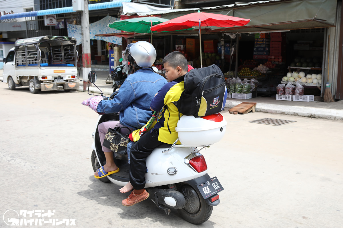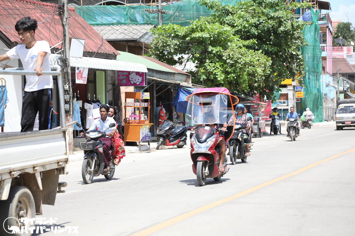 タチレクは自動車もたくさん走っていますが、他の東南アジアの国同様、オートバイに乗っている人が多いです。ヘルメット着用率は、見た印象では1割か2割でしょうか。
