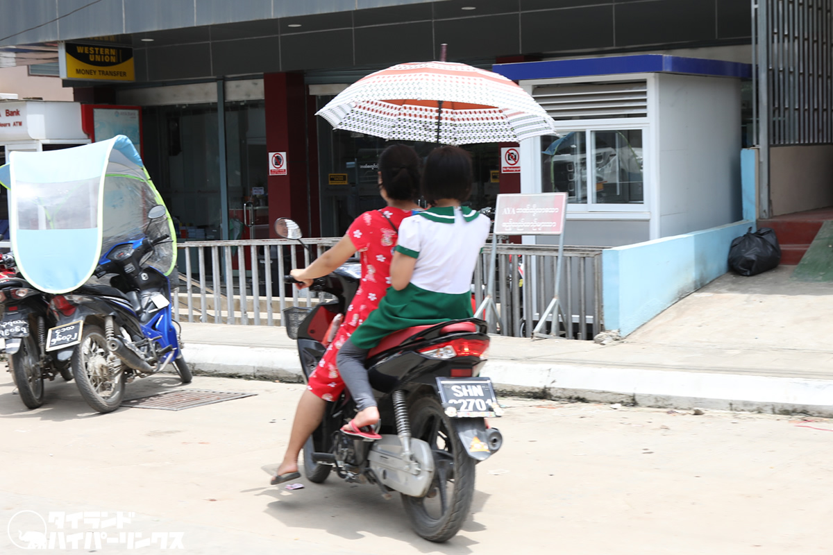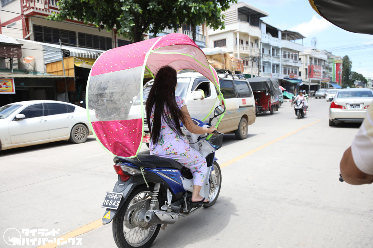 そしてよく見かけるのが、傘を差してオートバイに乗っている人たち。タイではまず見かけませんが、ここでは普通に見かけました。