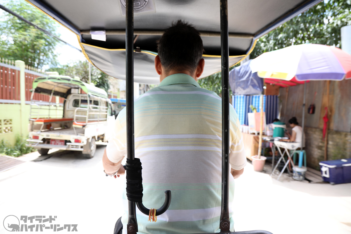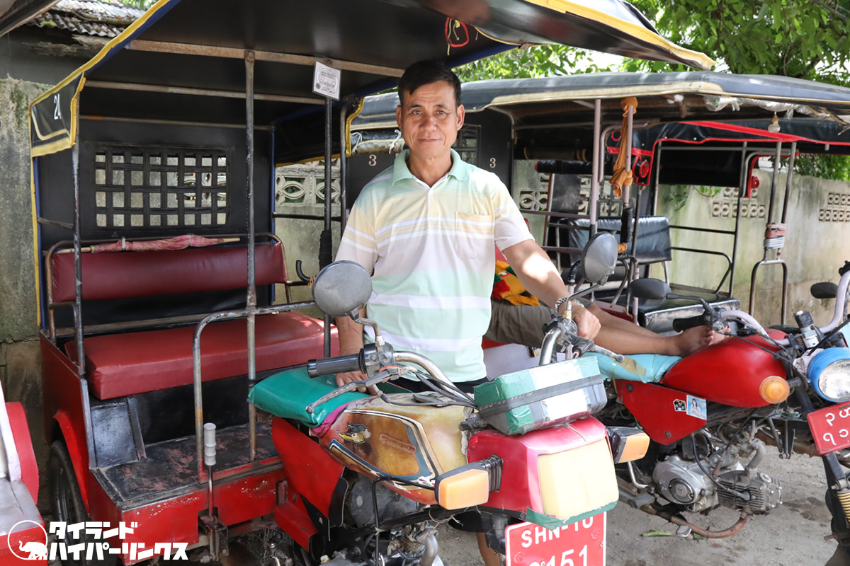 客引きの兄さんに紹介された、トゥクトゥクのオジサン。タチレクの見どころを何箇所か巡って、最後にホテルまで送ってもらって、200バーツだそうです。日本円にして約700円。安いので、値切りは不要ですね。