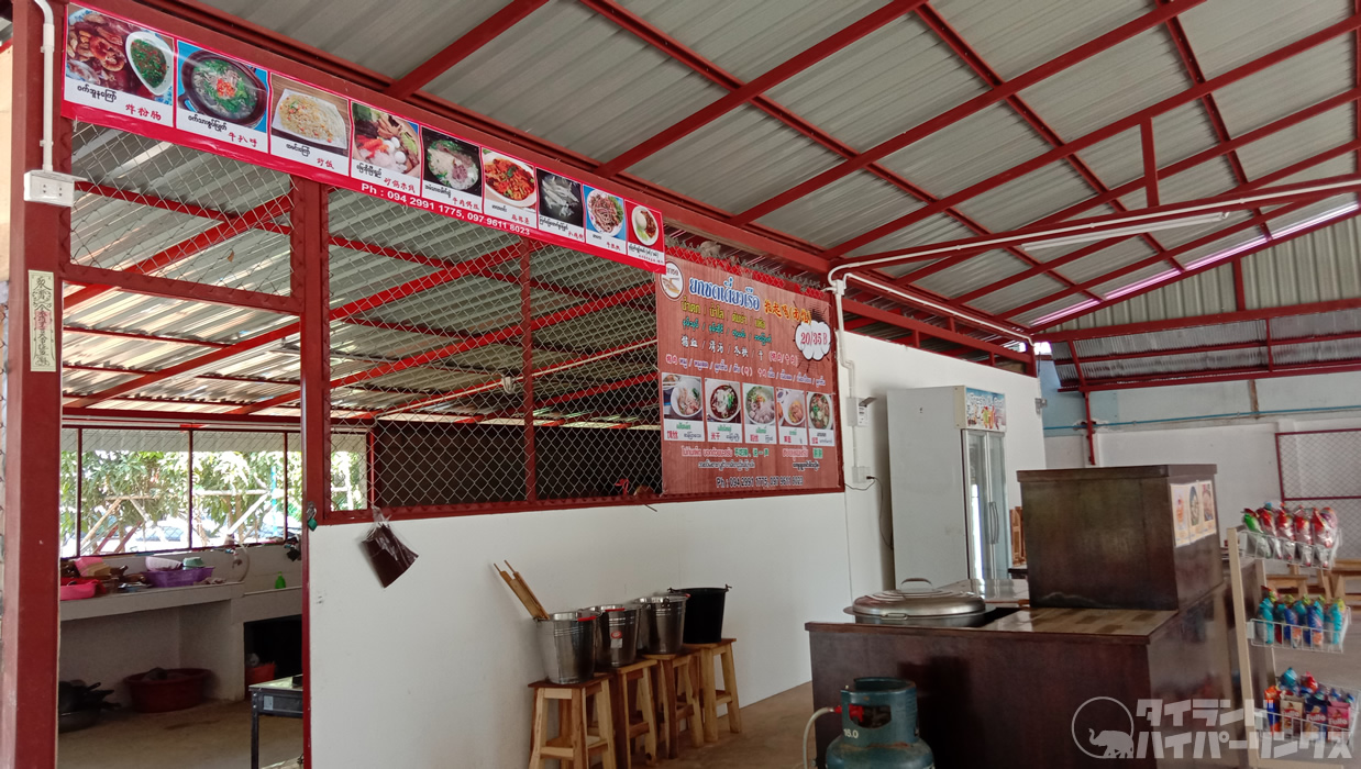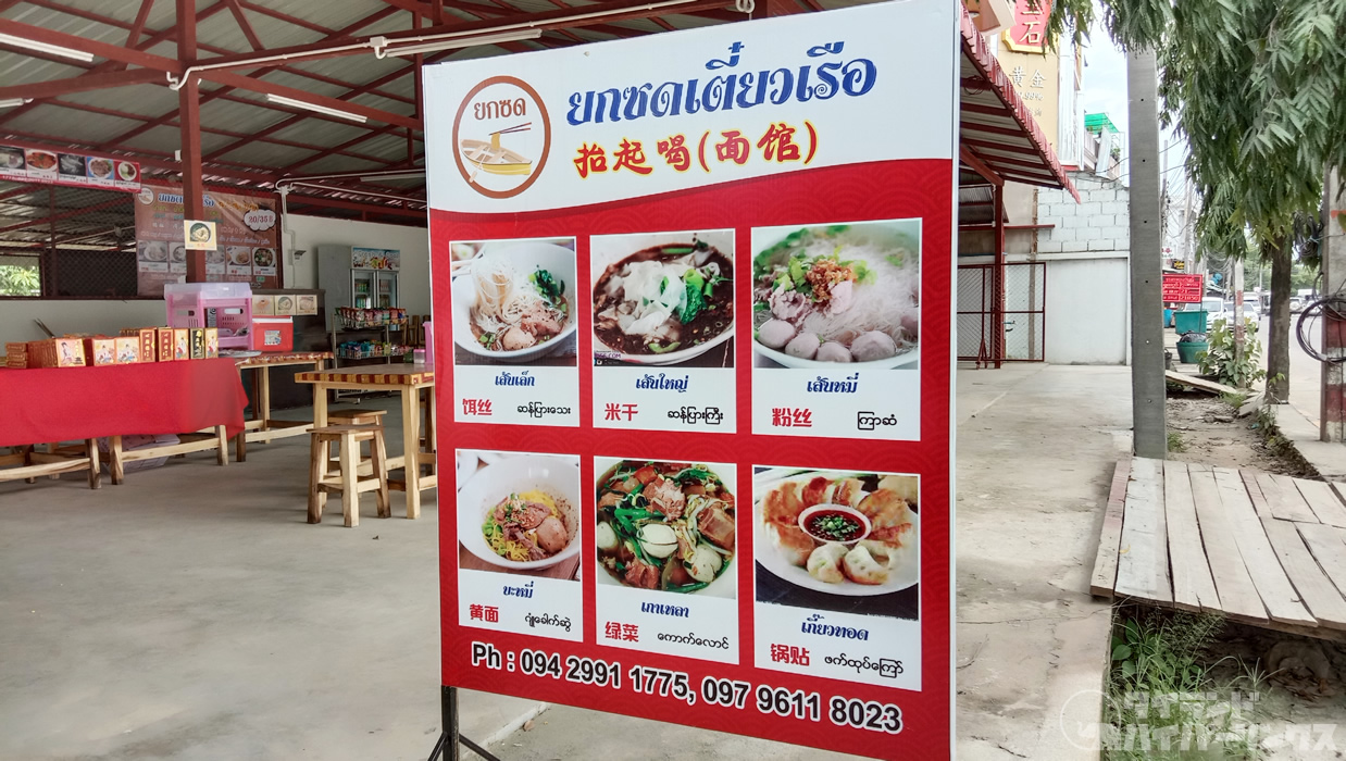 Taunggyi Tarchileik通りを国境方面に少し歩くと左手にあったのが、こちらの食堂。タイ語の店名は「ยกซดเตี๋ยวเรือ(ヨックソッドティアウルア)」、中国語の店名は「抬起喝(面馆)」です。