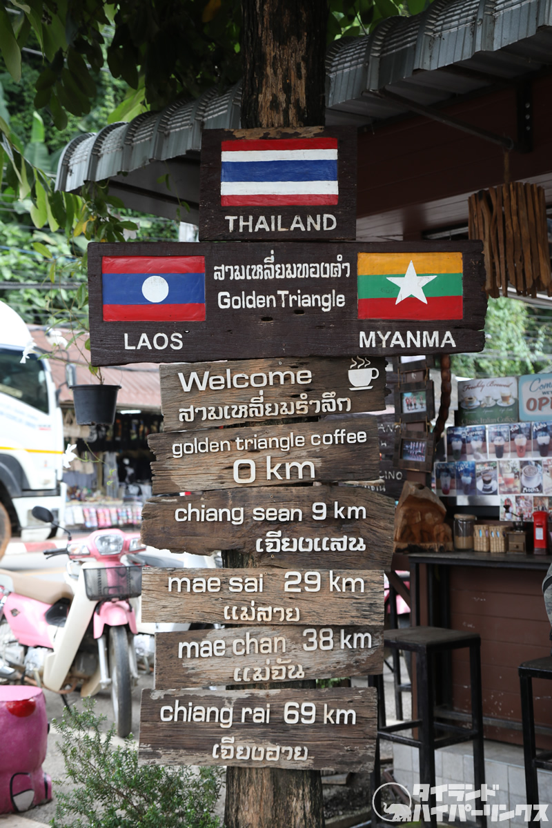 今回ゴールデントライアングル公園を目指した目的は、色々なネット記事でよく見る三角の案内表示を見たかったため。それがこちら!