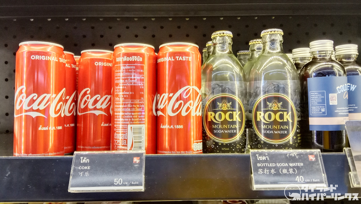 缶ジュースは40バーツから50バーツ。以前と変わりませんね。