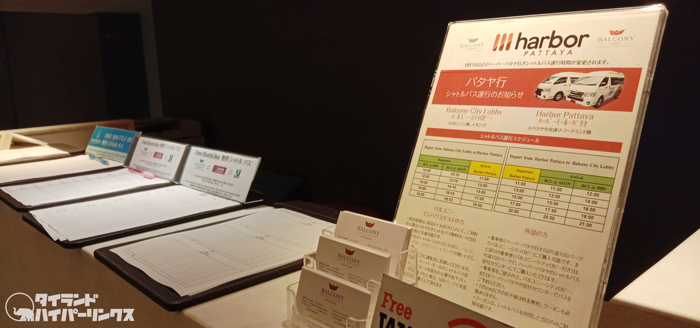 たっぷりとシラチャの夜の街を堪能したら、無料シャトルバスでホテルへ。「ロビー」で部屋番号と名前を書いて30分に一本のシャトルバスを待ちます。