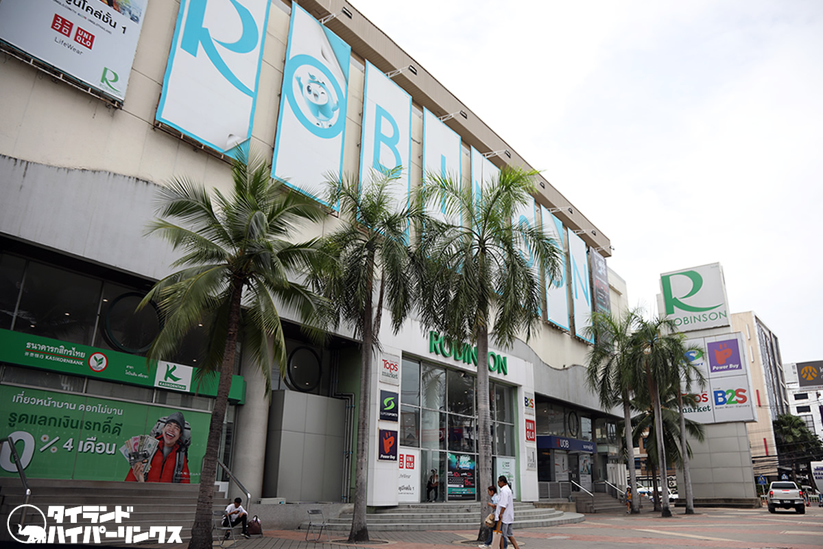 大きなショッピングセンターはロビンソンデパート。まさにここが街の中心で、日本料理店やマッサージ店も多数。夜になると日本人クラブ(カラオケ)も賑わいます。