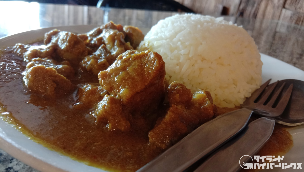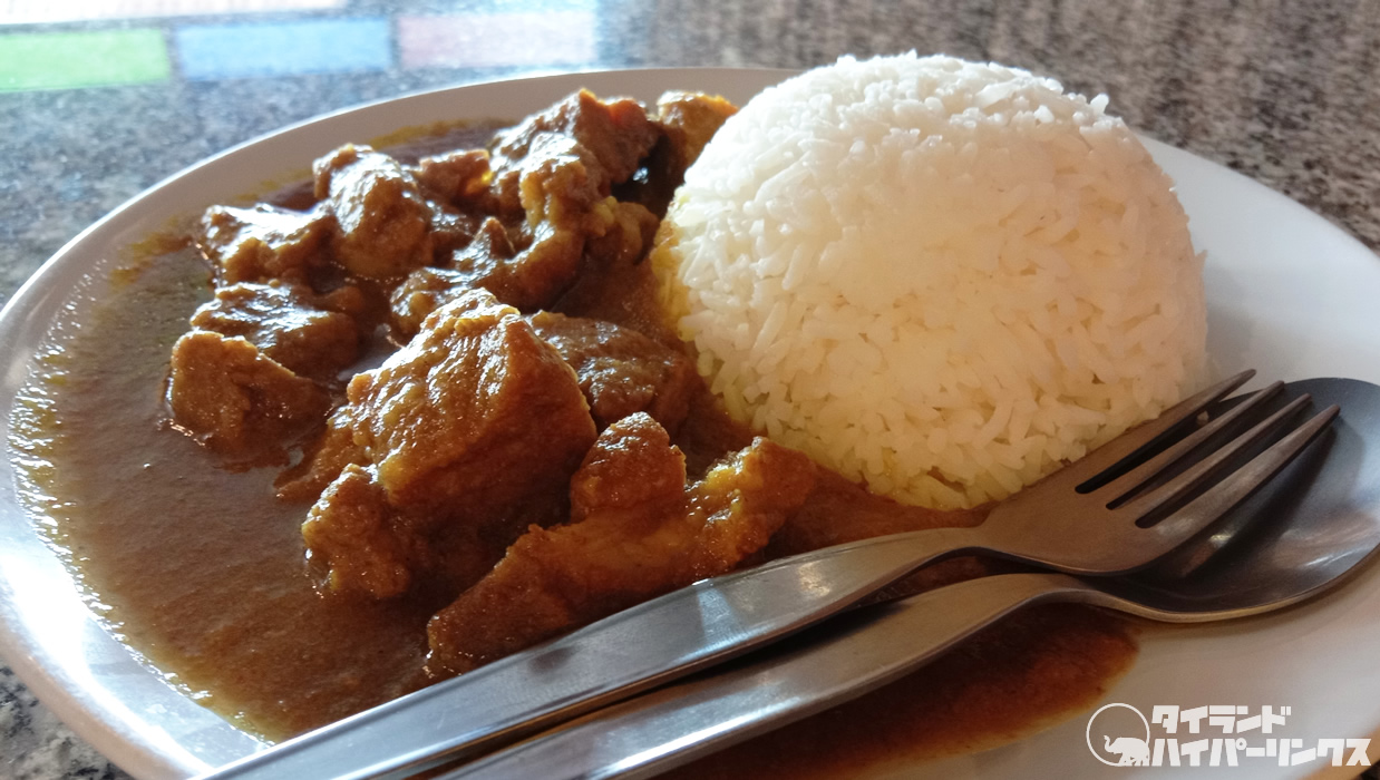 価格は上の写真のご飯付き、いわゆるカレーライスが75バーツ、「ゲーンハンレー」のみたっぷり器に入ってくるのが135バーツ。一人でも注文しやすい“カレーライス”がメニューにあるのはありがたいですね!