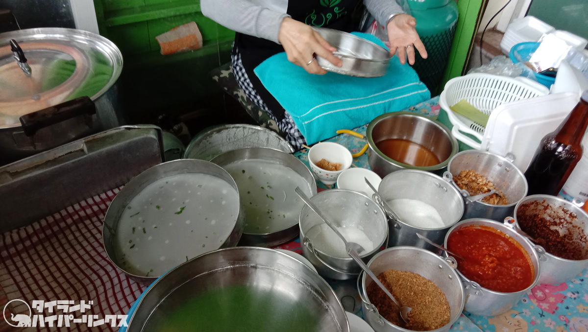 店頭では、「カオソーイ・ノーイ」というチェントンの料理を作っていました。