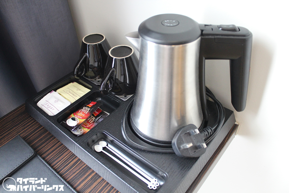 電気ポットがあるので、いつでもコーヒーやお茶が飲めます。夜中にインスタントラーメンを食べたりできるのもありがたいですね。