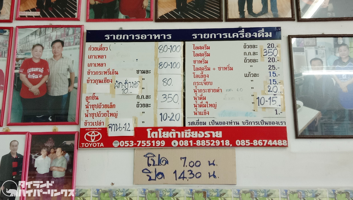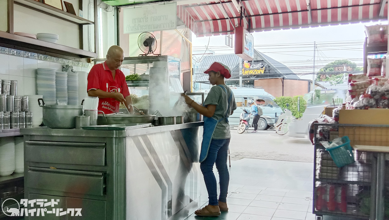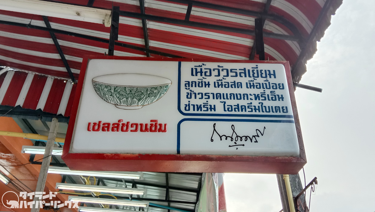 「ヌアウアロットイアム」の店頭に掲げられていたのは、タイ版ミシュランとも言える緑色の丼のマーク。これは王族の血を引く有名料理評論家のタナッシー氏が認定した、美味しいお店の証なのです。これは期待大!
