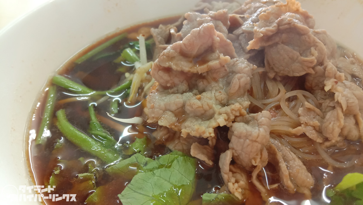 出来上がって来たのはこちら、お肉たっぷりの牛肉ヌードル「クワイティアオ・ヌア(ก๋วยเตี๋ยวเนื้อ)」です。