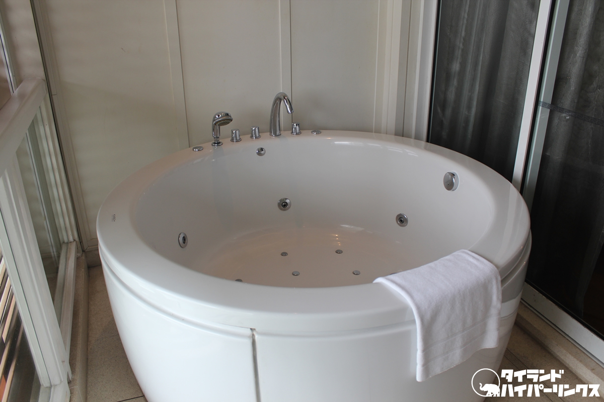 客室の中に浴槽があるだけでなく、何とベランダにもジャグジー付きの浴槽が!