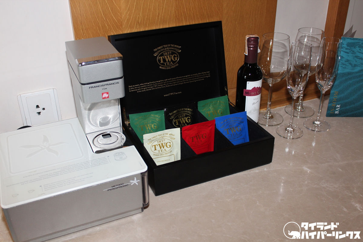 エスプレッソマシンや紅茶は無料のサービスです。いつでも美味しいコーヒーが飲めるのはありがたいです。