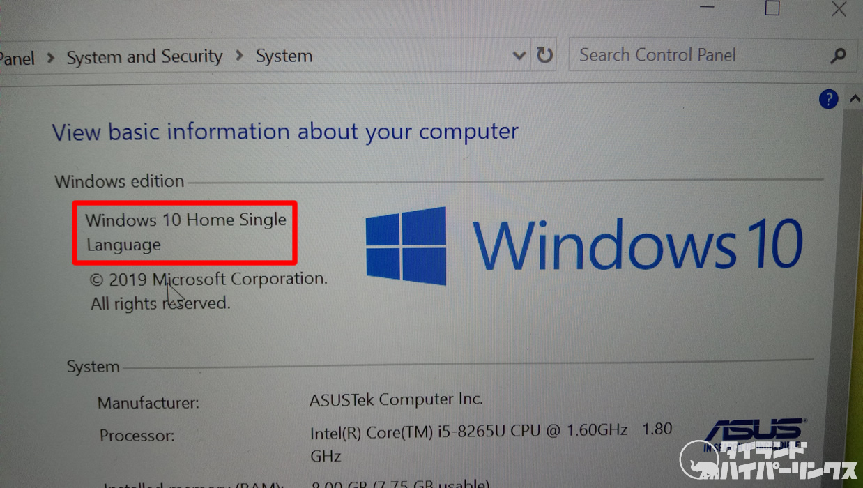 実はタイで販売されているWindows 10のノートパソコンのEditionは、ほとんどがWindows 10 Home Single Languageで、英語とタイ語でしか利用できないようになっています。それが安さの秘訣のようですが、とにかく日本語化ができないのです。