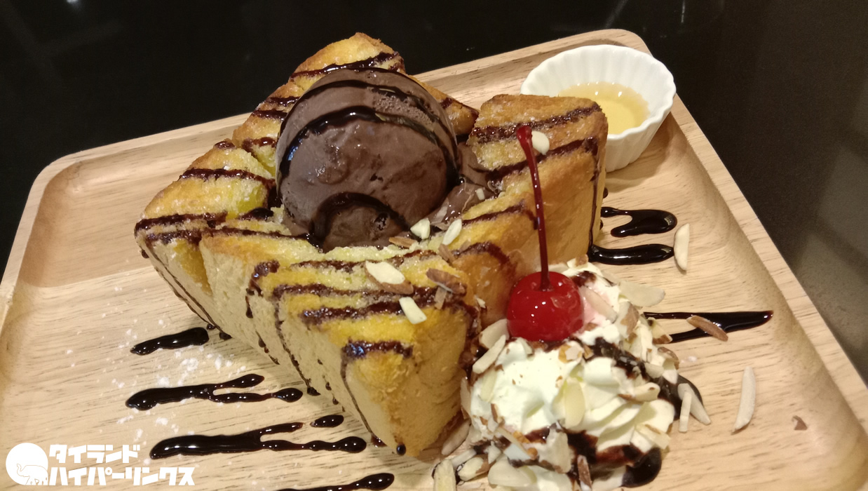 食後のデザートに「ハニートースト」。確か135バーツだったでしょうか?、ラーメンより高かったんですが、激うま!