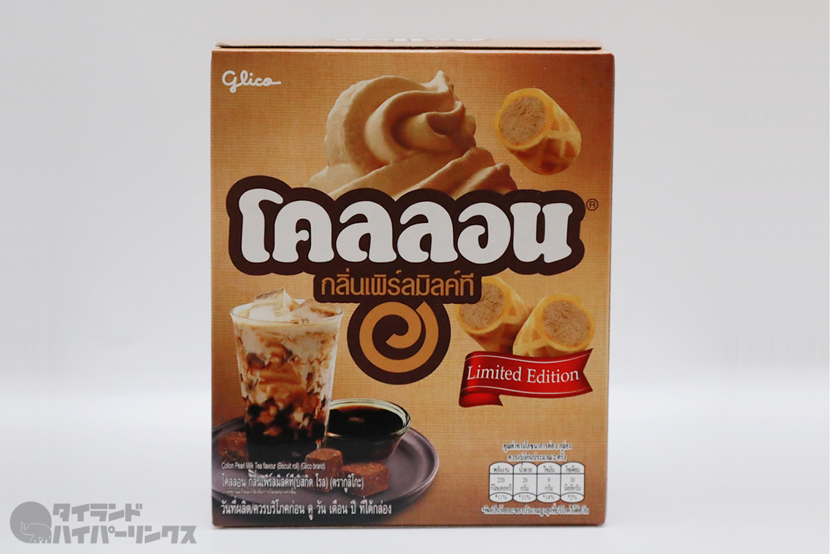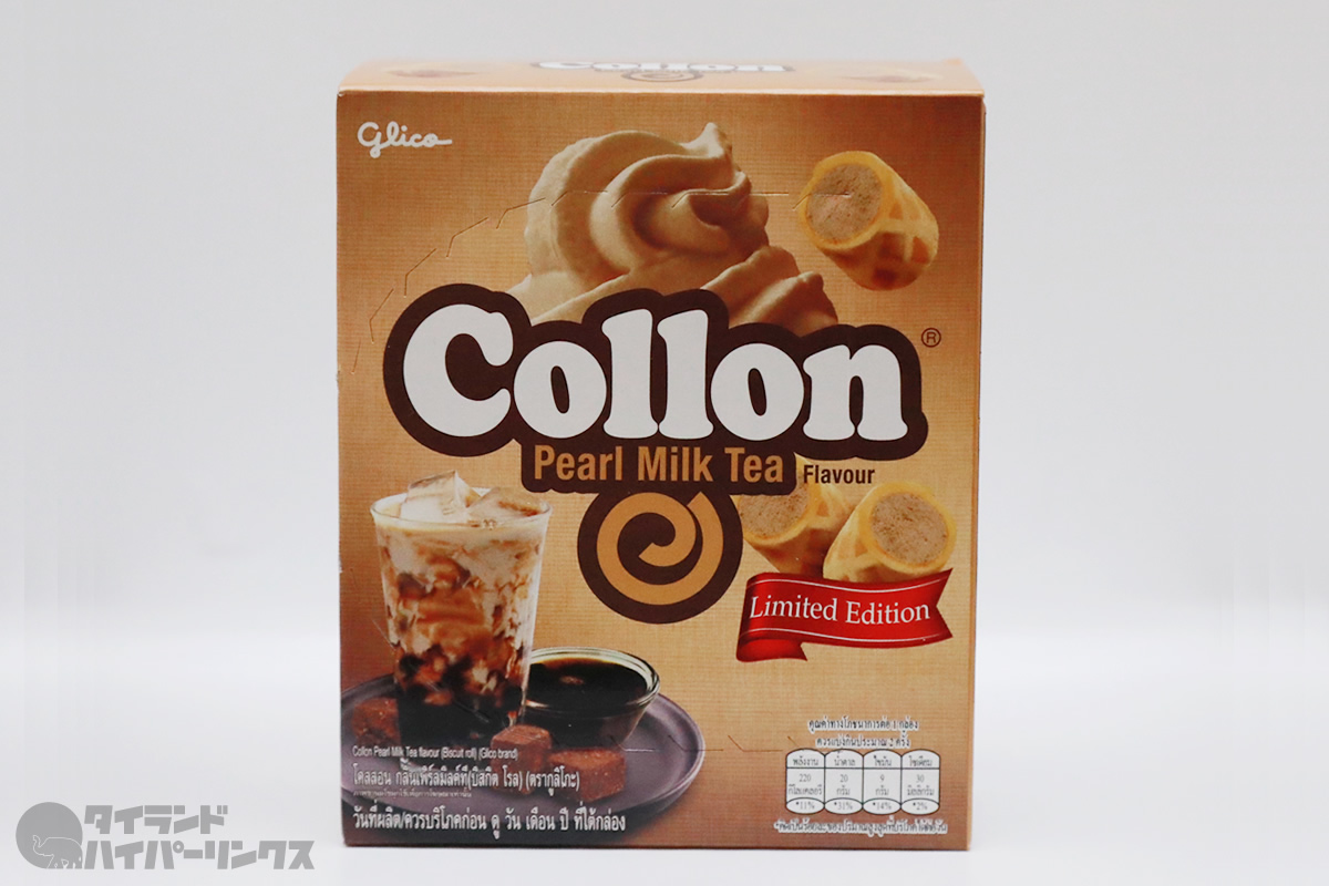 タイでも人気のグリコのお菓子「コロン(Collon)」。コンビニのレジ横で見つけた新発売のフレーバーの「コロン」は、パールミルクティー(Pearl Milk Tea)、つまりタピオカピルクティーでした。