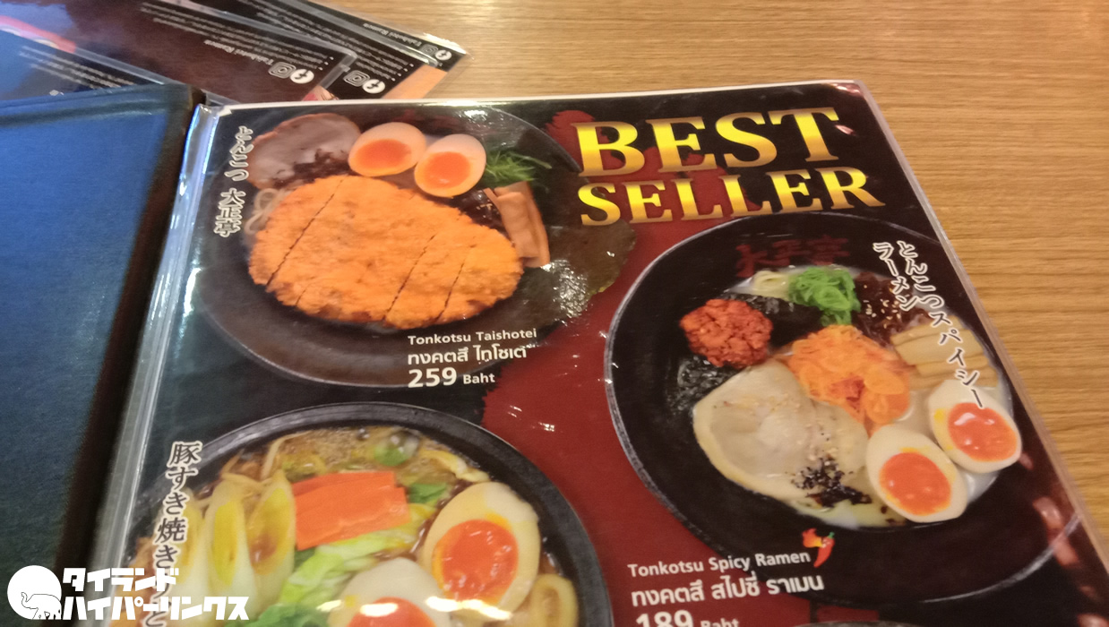 「つぼ八」のラーメンなので、純日本風(?)かなと思っていましたが、日本ではあまり見ないトンカツが乗ったラーメンがあるなど、タイ人の味覚に寄せている感じはしました。