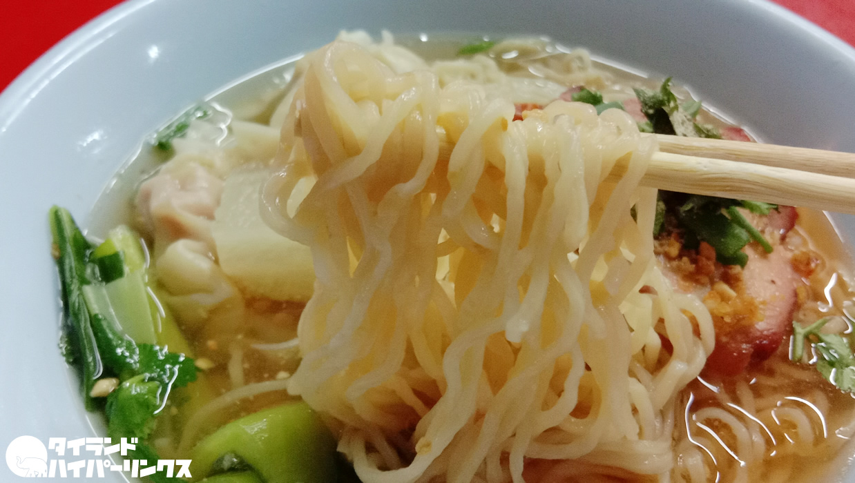 麺はこんな感じ。この屋台の麺は、日本のラーメンのようにつるつるなのです。