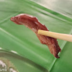 この日「もち寿司」を訪れたのは夜10時頃だったでしょうか。店内は広くはないですが、お客さんで賑わっていました。なお入って右手がカウンター。左手はテーブル席ですが壁が一面鏡張りなので、広く見えます(笑)。