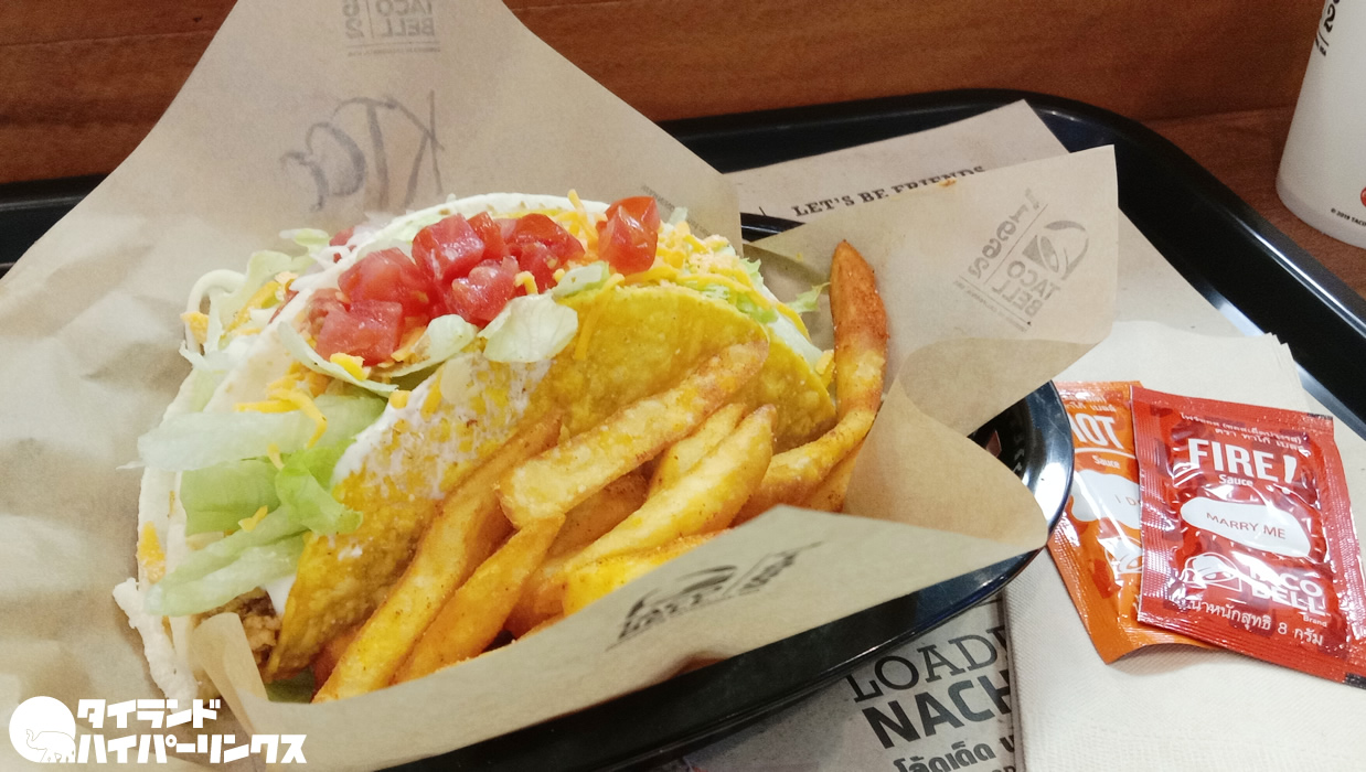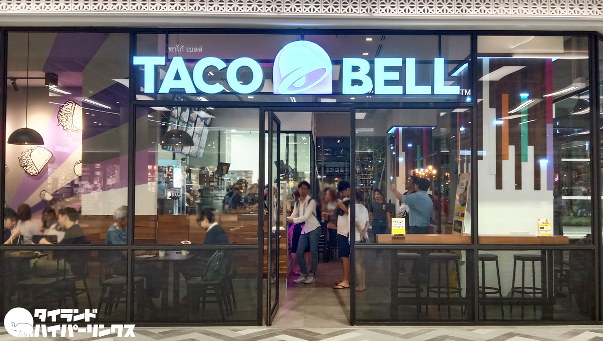 「TACO BELL」は、アメリカ発祥のメキシカン・ファストフード店で“タコス”が食べられる店。タイでは2018年1月24日にBTSプルンチット駅前のマーキュリー内にオープン。現在はマーキュリー、ミッドタウン、サイアムパラゴン、セントラル ピンクラオで4店舗を展開中です。世界では7000店舗もあるそうですね。