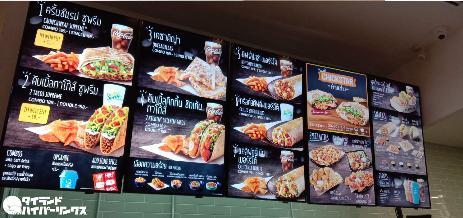 バンコクのMRTサムヤン駅直結の新しいショピングセンター・ミッドタウンを訪れた際、G階の「TACO BELL(タコベル)」に行ってきました。