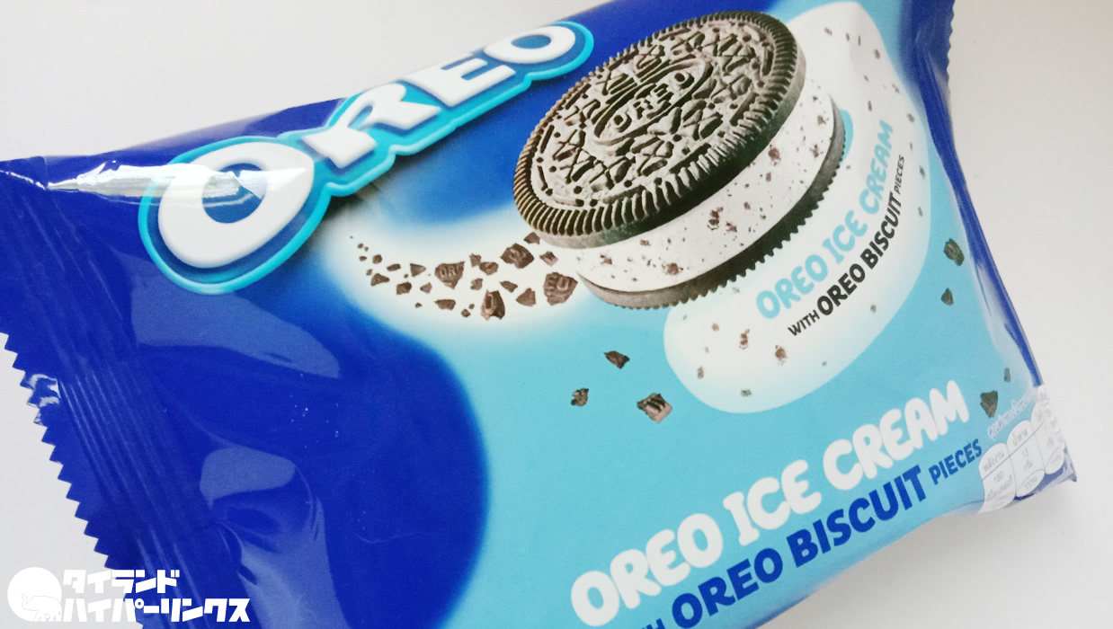 コンビニで売られているOREOの棒アイスが美味しくて美味しくて、いつも買いだめをして冷凍庫にストックをしていますが、さらにOREOの新アイスが登場。それがOREOビスケットでサンドされたアイスです。価格は1つ30バーツ。
