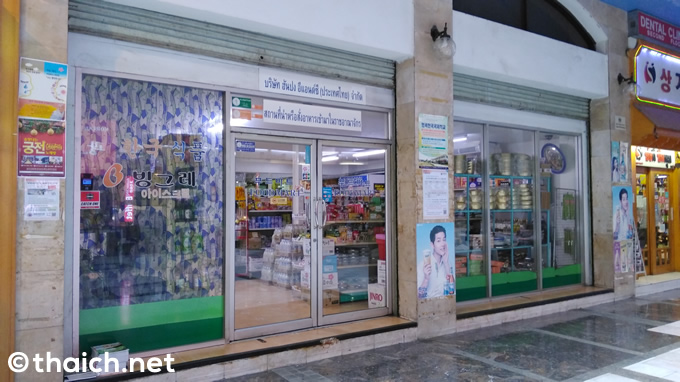 今回、そんなスクンビットプラザを訪れたのは、キムチを買うため。左奥にある韓国食材店に色々な種類のキムチが売られていて、ここでキムチを仕入れる飲食店も少なくないのだとか。