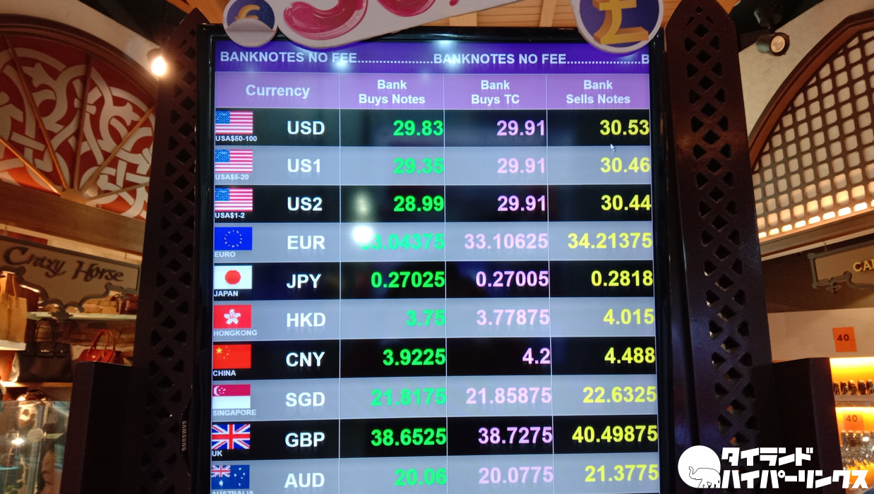 とういうことで、バンコクの空港でレートの良い両替所を探す時間的余裕がない場合は、両替の額は最低限にしておいたほうが良いと思いますよ!