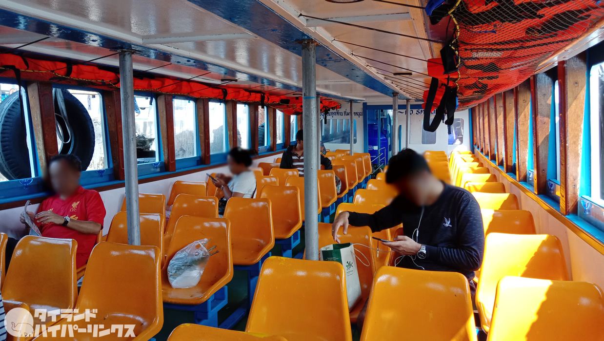 こちらはガラガラ。シーチャン島からの帰りには上の席に座りましたが、やっぱり上の方が景色もよく、風も気持ち良いです。