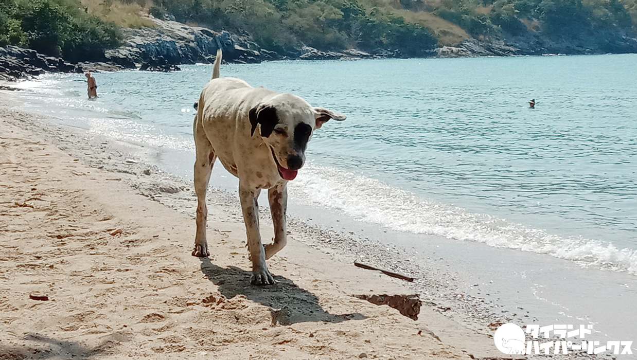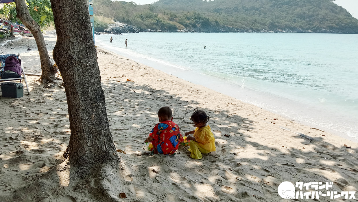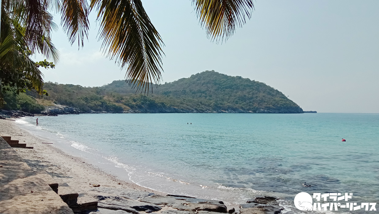 シーチャン島にやって来た目的はやっぱりビーチ。宿泊しているホテルからトゥクトゥクで向かったのは、島の西岸にあるタムパンビーチ(Tham Phang Beach)です。ビーチとして“営業”しているのは、タムパンビーチが唯一のようです。
