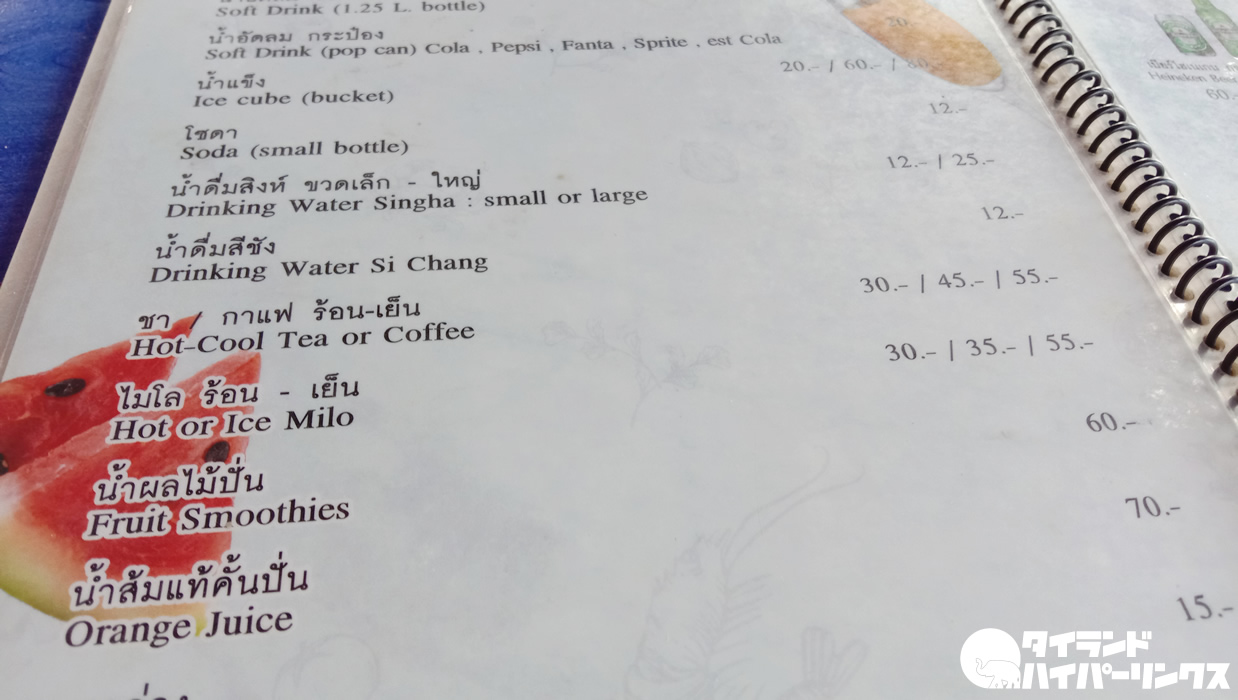 タムパンビーチはビーチチェアもパラソルも無料ですが、レストランの持ち物。なのでドリンクや食事を注文しました。