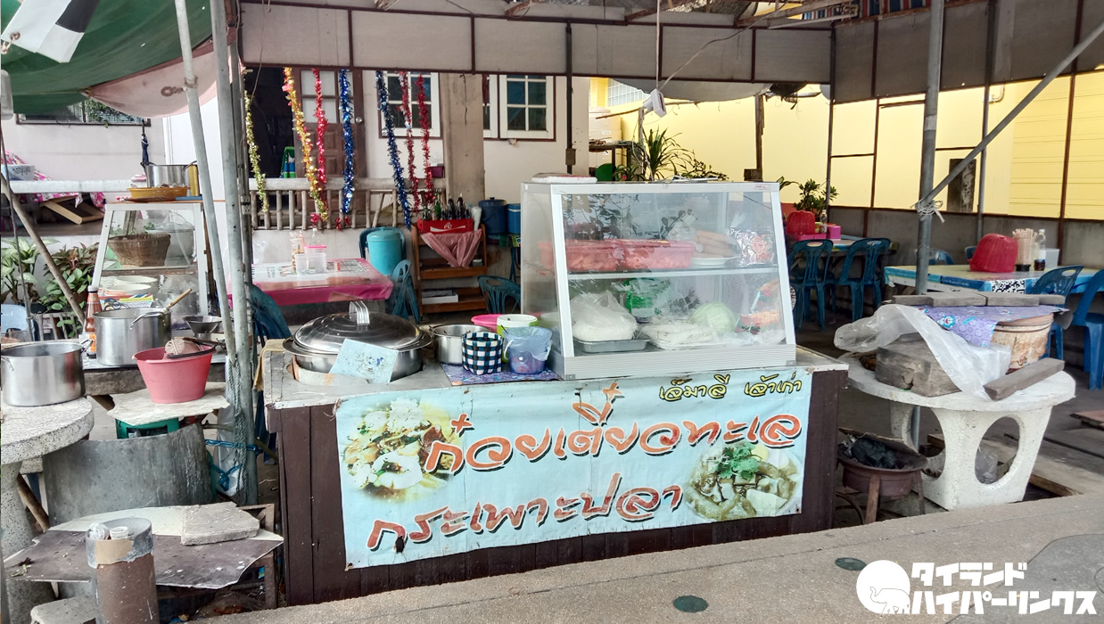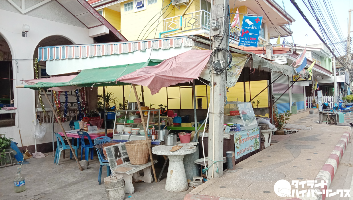 シーチャン島といえば、やはりシーフードですね。もちろん様々なシーフードが満喫できるレストランもありますが、それはそれは気軽に安くて美味しいシーフードが食べられる食堂もあるんです。それが今回たまたま訪れたシーフードヌードル「クワイティアオ・タレー(ก๋วยเตี๋ยวทะเล)」が食べられる食堂。おばあちゃんが店頭で魚を湯がいているのを見て、入ってみたら、大当たりでした!