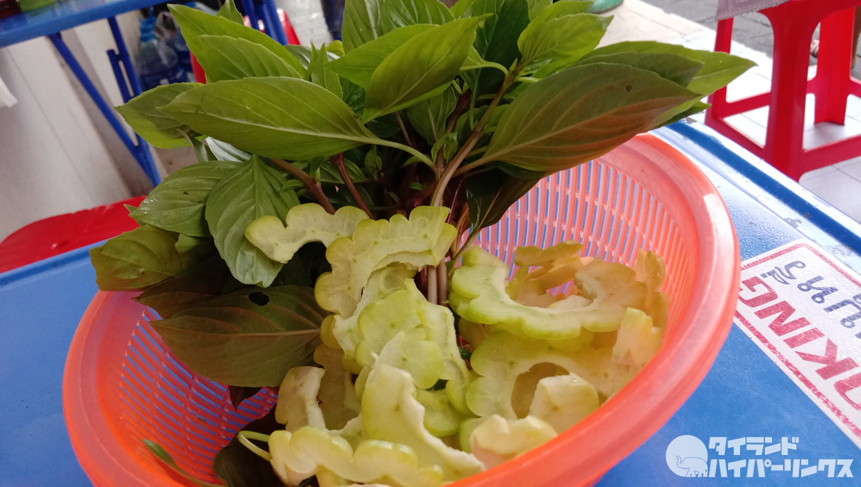 生の苦瓜とスイートバジルはお好みで。どちらもタップリに入れるのが好み。