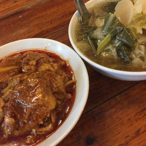 最後にイサーン鍋「チムチュム」です。素焼きの鍋にタップリ具材を入れて、炭火でグツグツ煮込みます。最後はしっかりタイの味・・・と思いきやタレはポン酢だったのです。日本人だからポン酢を持ってきてくれたのかは分かりませんが。ポン酢で食べるチムチュムも美味しいですね。