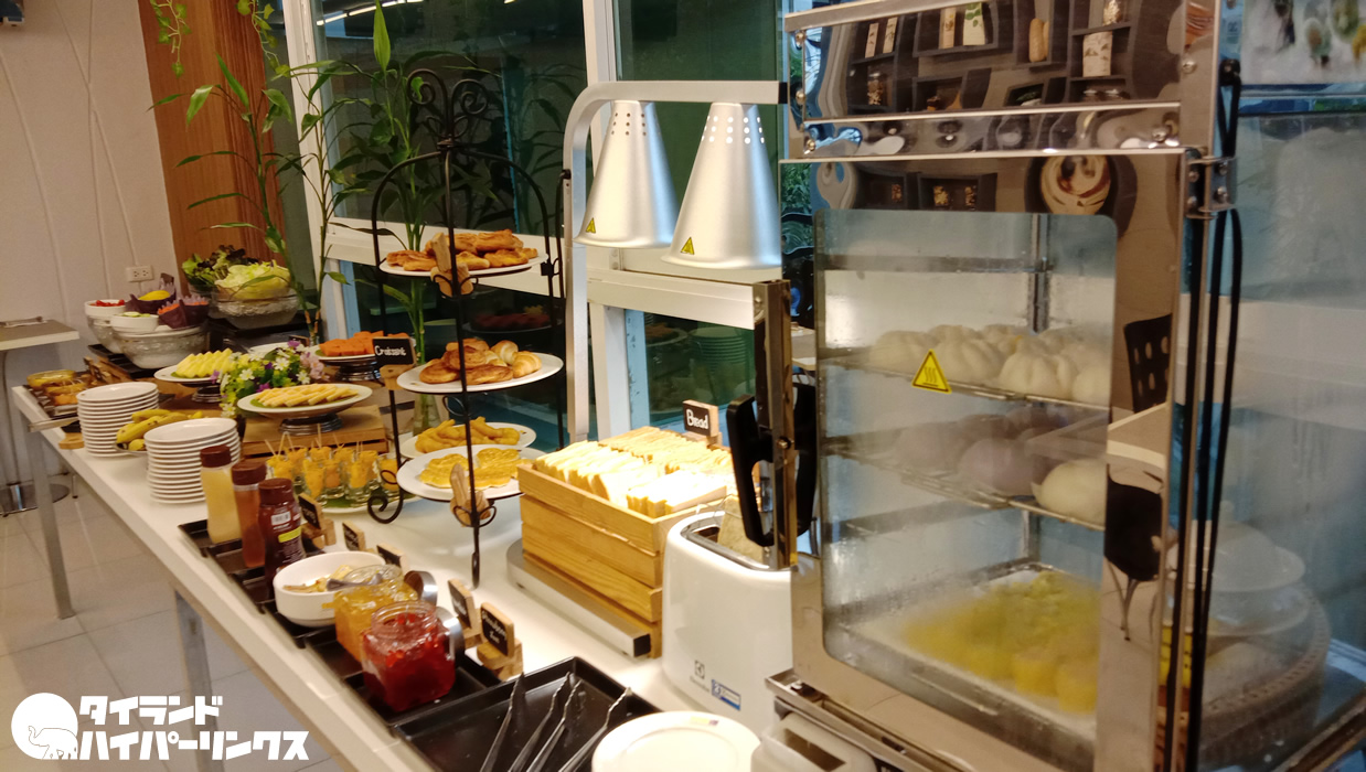 朝食付きの場合はブッフェスタイルです。シンプルながらも、卵コーナーがあって、オムレツや目玉焼きを注文後に焼いてくれるのは嬉しいですね。