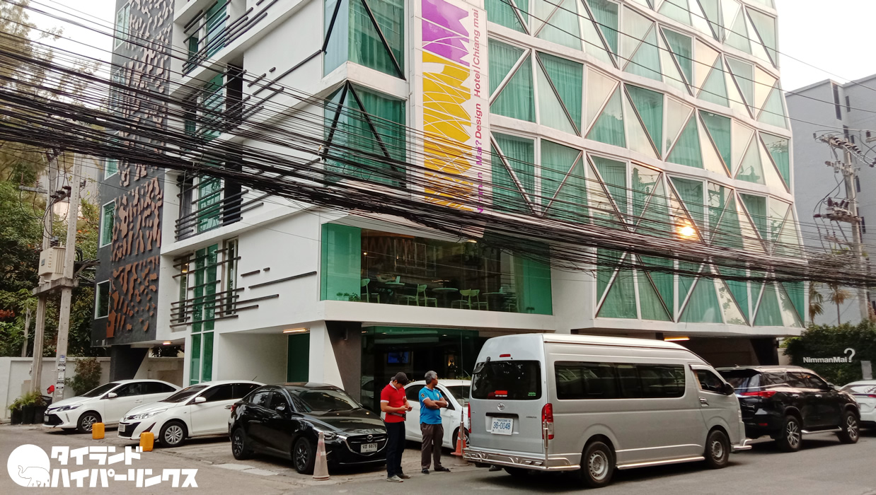 今回したのは宿泊したのは、ニンマーンヘーミン通りソイ2とソイ4の間のスックカセム通りにある「ニマン マイ デザイン ホテル チェンマイ (Nimman Mai Design Hotel Chiang Mai)」です。MAYA(メーヤー)というショッピングセンターからも徒歩5分ほどの好立地です。