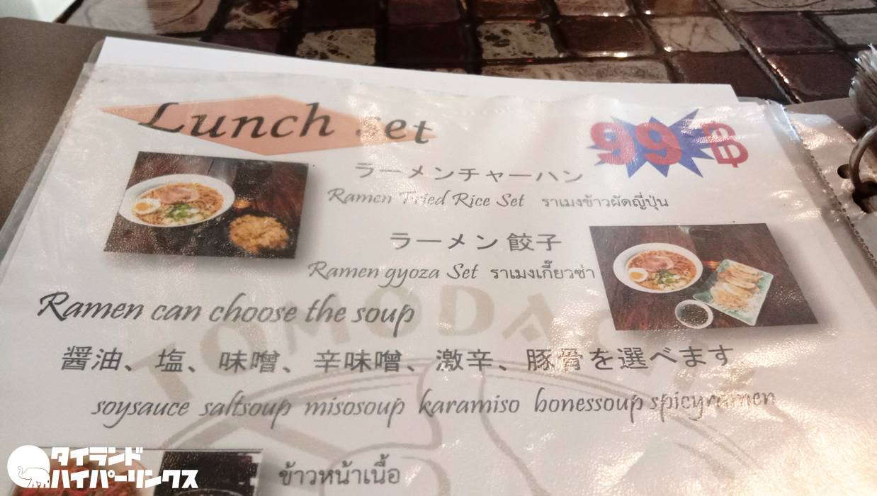 この日注文したのは99バーツのランチセット。辛味噌ラーメンと餃子のセットでお願いしました。