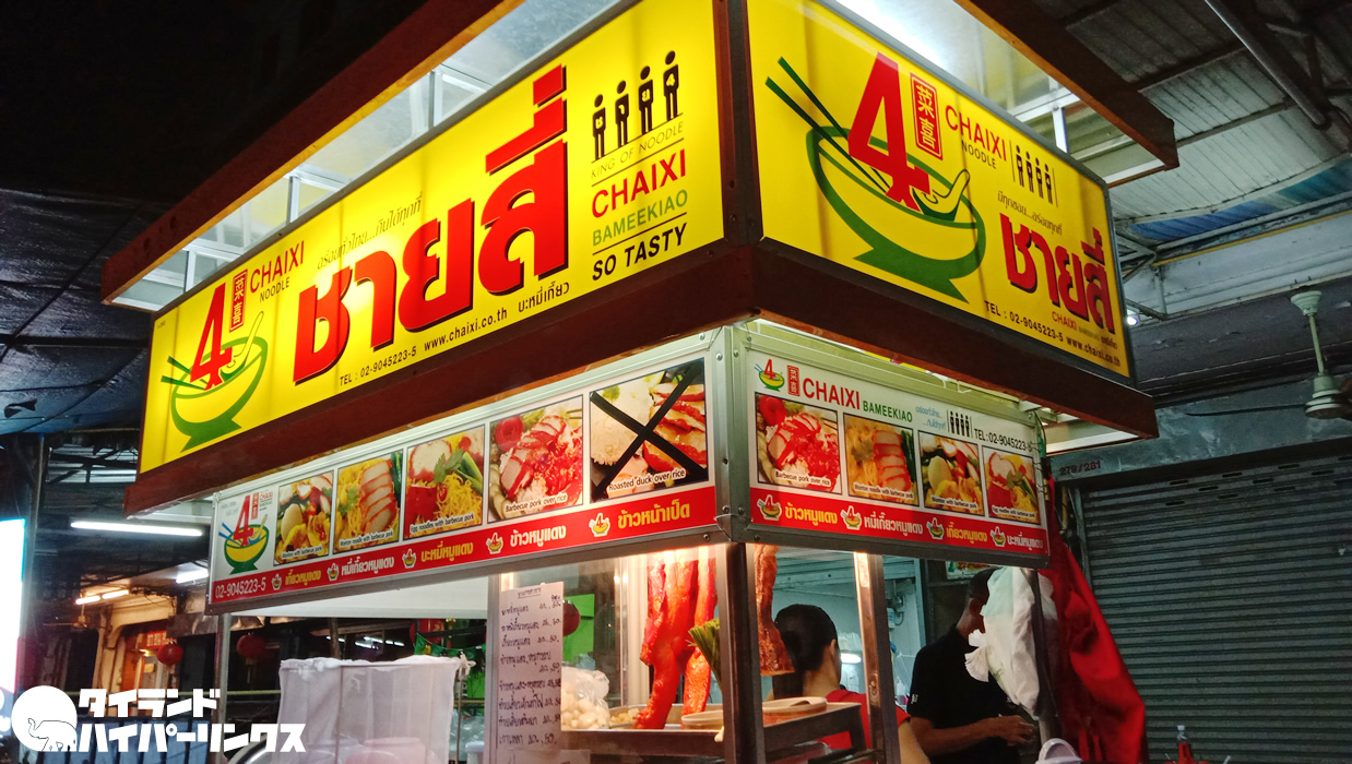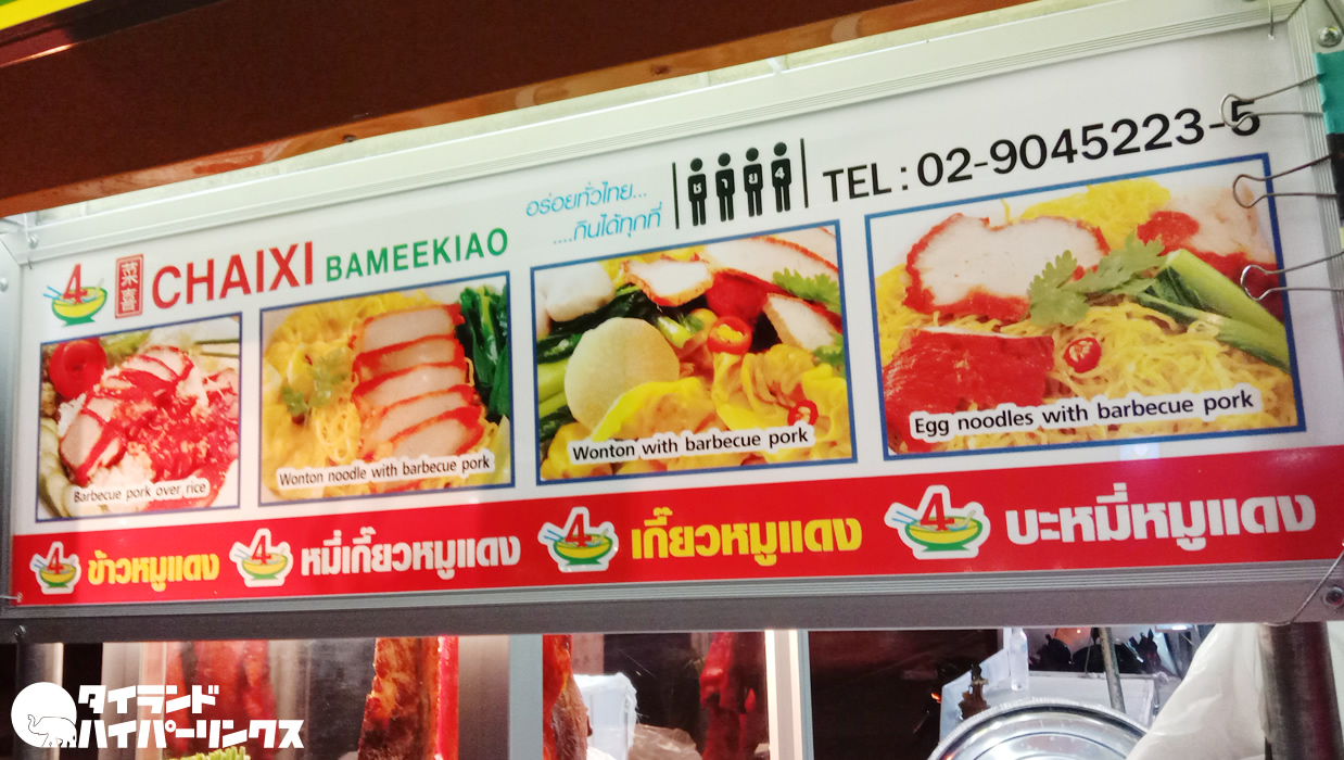 「チャイシー・バミーキアオ」とは“4”のマークでおなじみの、タイ全国に展開する雲呑麺屋台のフランチャイズです。みなさんもどこかで見かけてますよね?タイのお隣の国、ラオスでも見かけたことがありますよ。