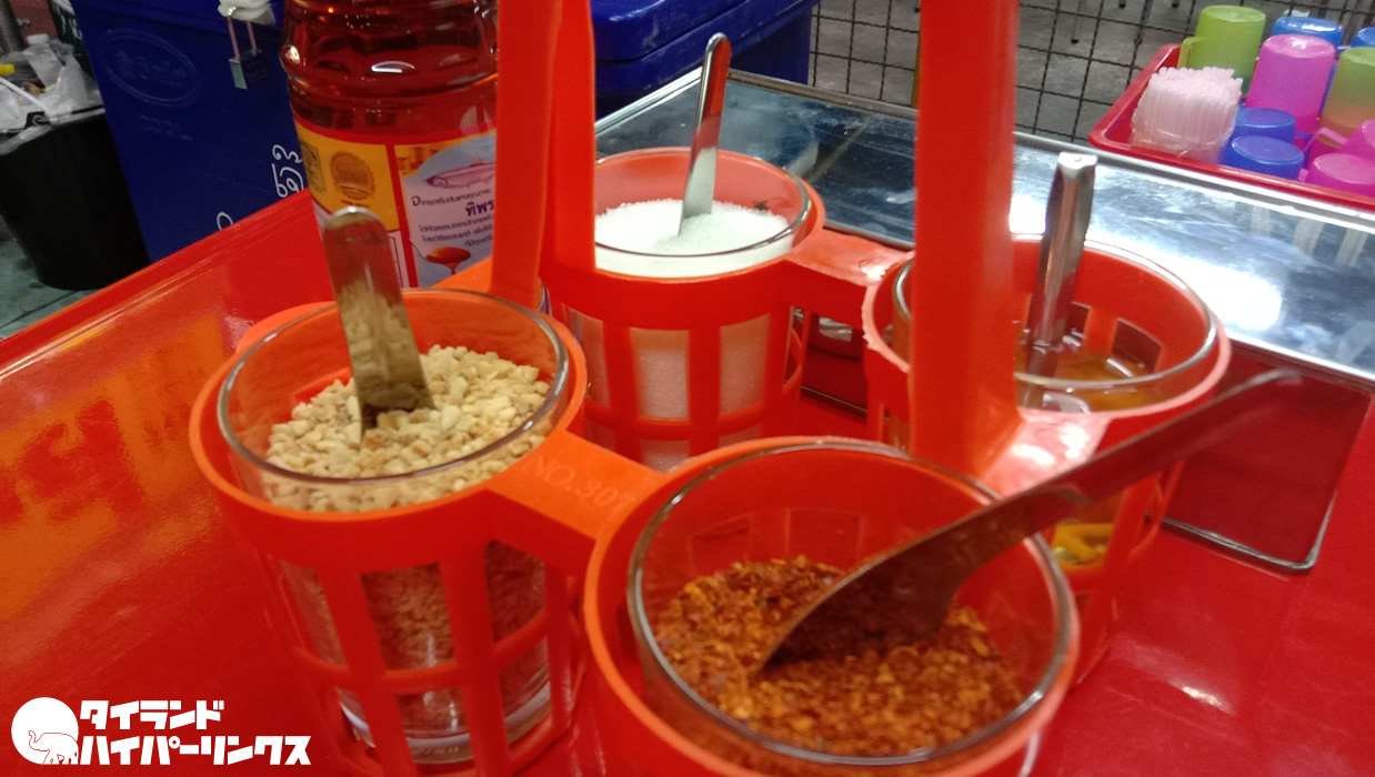 砕いたピーナツに砂糖、お酢に唐辛子にナンプラーでお好みの味にして、いただきます!