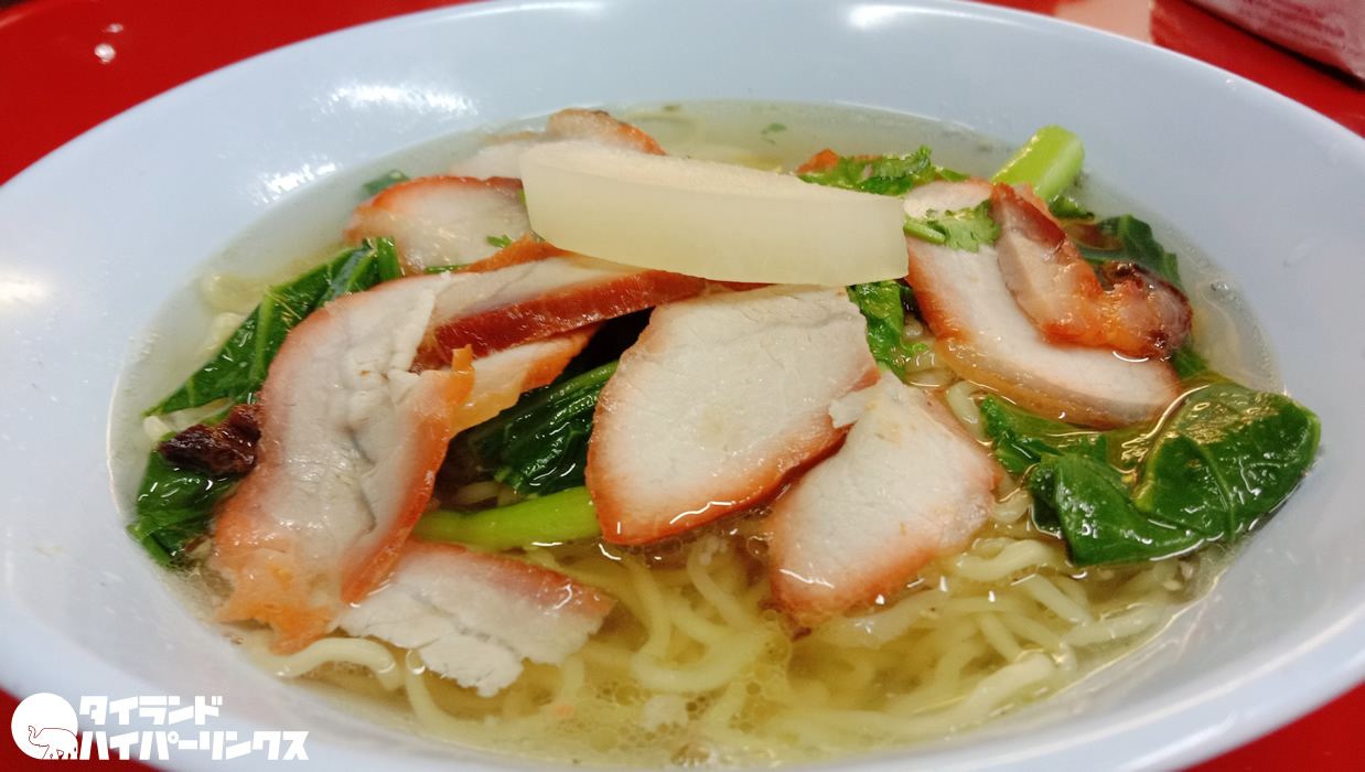 ここのメニューはこの通り。45バーツのチャーシュー入の雲呑麺をオーダーしました。