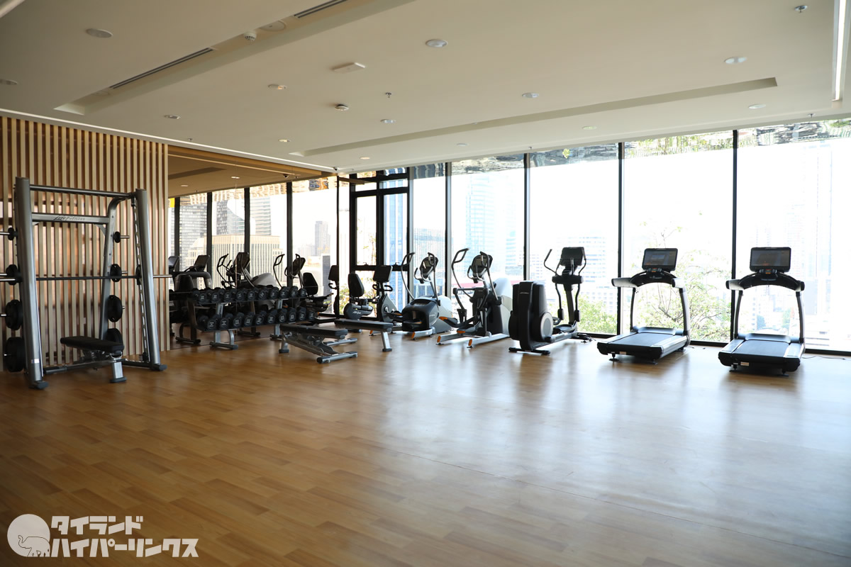 プールから階段を登って続く19階の見晴らしのよりフィットネス。ここは24時間オープンです。